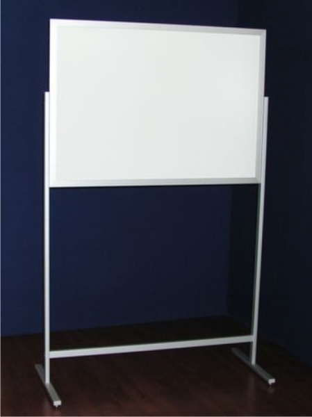 Wykonany z aluminium anodowanego na kolor srebrny-mat, powierzchnia ekspozycyjna z blachy stalowej lakierowanej w ramie aluminiowej o szer=30mm, umożliwia mocowanie informacji za pomocą magnesów, stojak wyposażony w stopki do jego wypoziomowania.